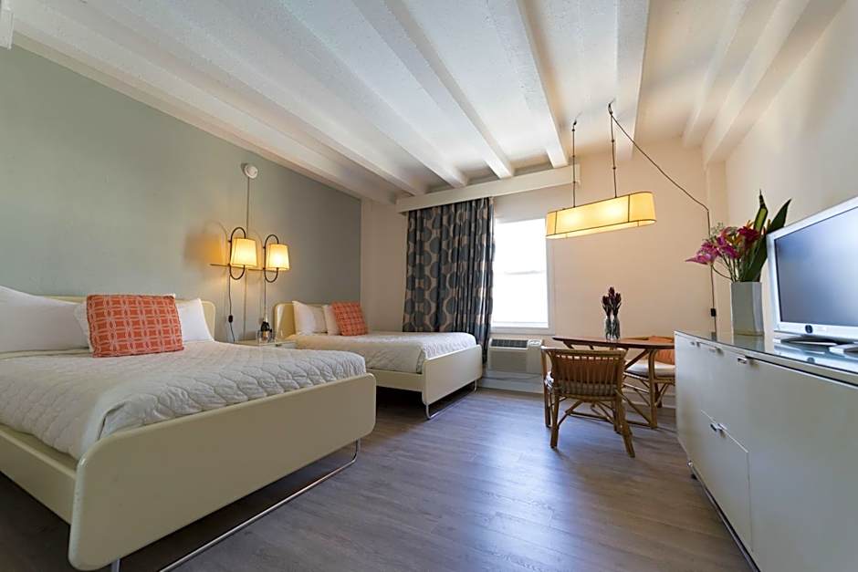 This oceanfront guestroom features hardwood flooring as well as a safety deposit box, small refrigerator and a private bathroom. A small table with chairs is provided.
